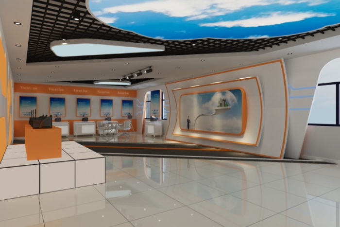 文康科技600平方现代橙色展厅装修